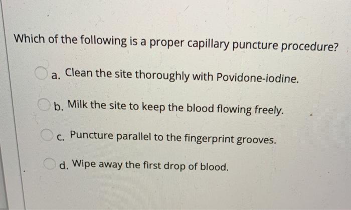 Position the patient so that the hand is easily accessible. However because the procedure is. If capillary blood gases are ordered they are drawn first to avoid.